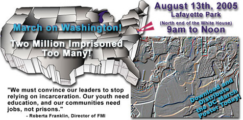 US: Washington: Hello. My name is Kay Lee and among other things, I am currently a coordinator for Prison Reform's first 'Call to Arms': A massive march which is scheduled to take off from Lafayette Park in Washington DC on August 13, 2005.