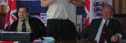 Morrison has been on the bottle for years, even selling information (including the addresses of his own 'comrades') to Leeds Antifa, Special Branch, and 'Searchlight' in return for beer-money, and he has plundered the coffers of whatever Nazi outfit he has ever held the reigns of. He was drinking until very recently, and when his fascist pals finally called "Time", turned to a series of insuarance scams to fund his lifestyle. This alone would seem to make Morrison an inappropriate choice to chair an AA meeting. But Morrison is a vicious and ruthless racist, arrested this very year for racially abusing his asylum-seeker neighbour, and with a long string of convictions for racist violence. He is considered dishonest and trustworthy even by his fellow Nazis and has abused every position he has ever held; he is already using AA meetings to peddle his racist views.